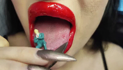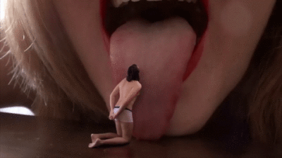 Von der gemeinen Gigantess wurde der Loser geschrumpft und so muss er ihren wundervollen Mund, ihre lange Zunge und ihre herrlichen Lippen anbeten, wenn er nicht verschluckt werden will. Die heiße Gigantess dominiert und erniedrigt den Winzling und lässt ihn leiden. Sie spielt mit seiner Angst und quält ihr kleines Spielzeug. Der Loser hat auch Angst davor, von den Zähnen zermalmt zu werden. Die Domination sorgt für einen extremen Mindfuck und er kann sich der Kontrolle seiner strengen Gigantess nicht entziehen.